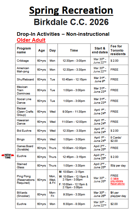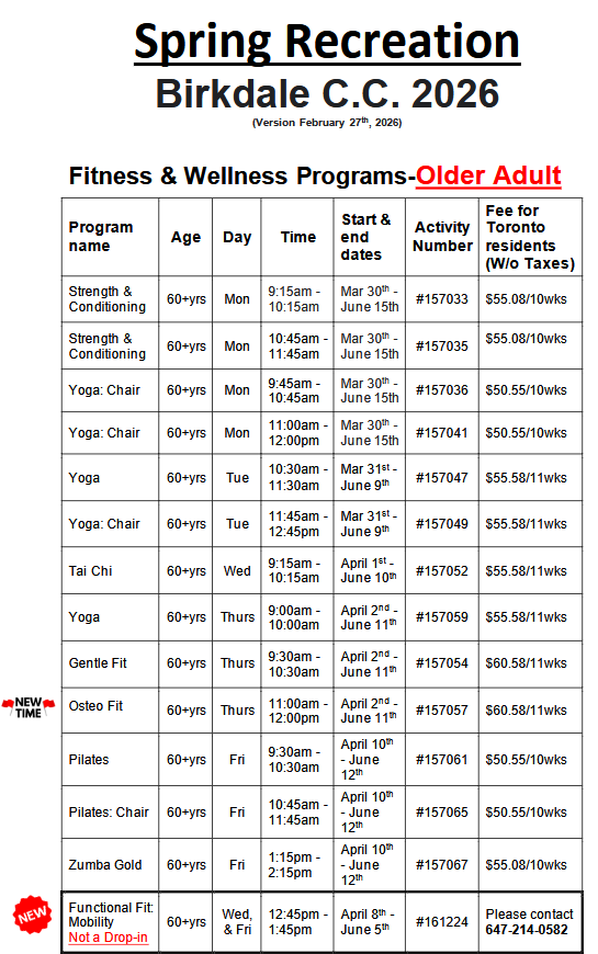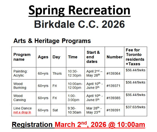 - Online: toronto.ca/OnlineReg (Click Registration and Booking)